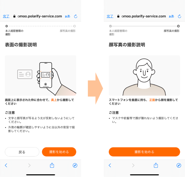 15.カメラが起動するので、マイナンバーを表裏・厚みを撮影する
