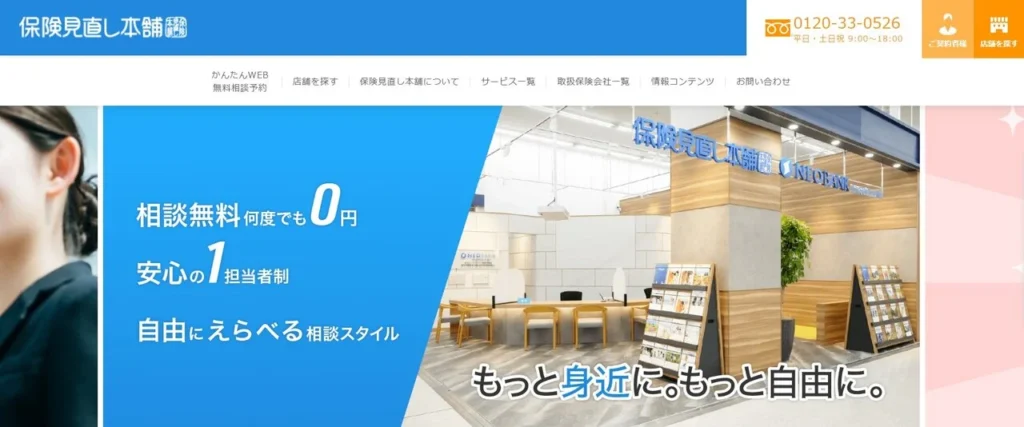 大手保険の代理店として、利用者の悩みに沿った保険を提案。取り扱っている保険数は40社以上と豊富です。